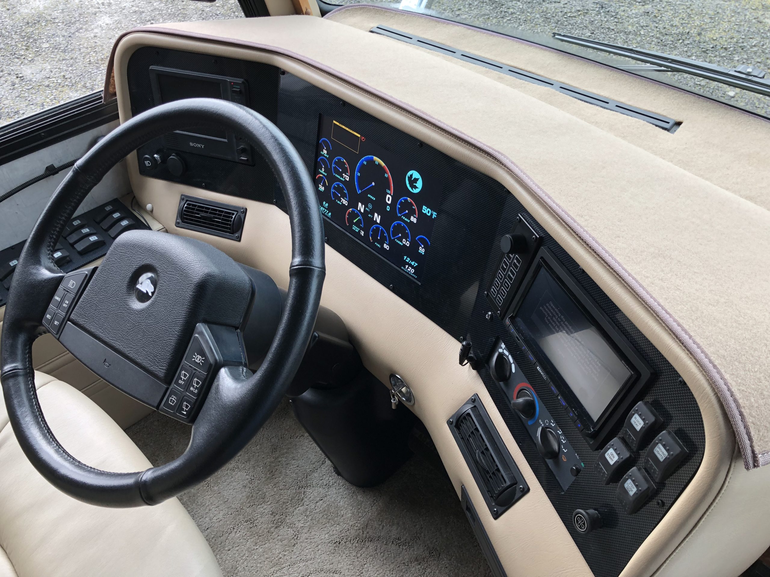 Whether you want to transform your dash into a Boeing worthy cockpit with the VMS765 Glass Dash or add a more budget friendly auxilliary monitor like the VMS500, our VMS products are packed with features that will add value to your coach.